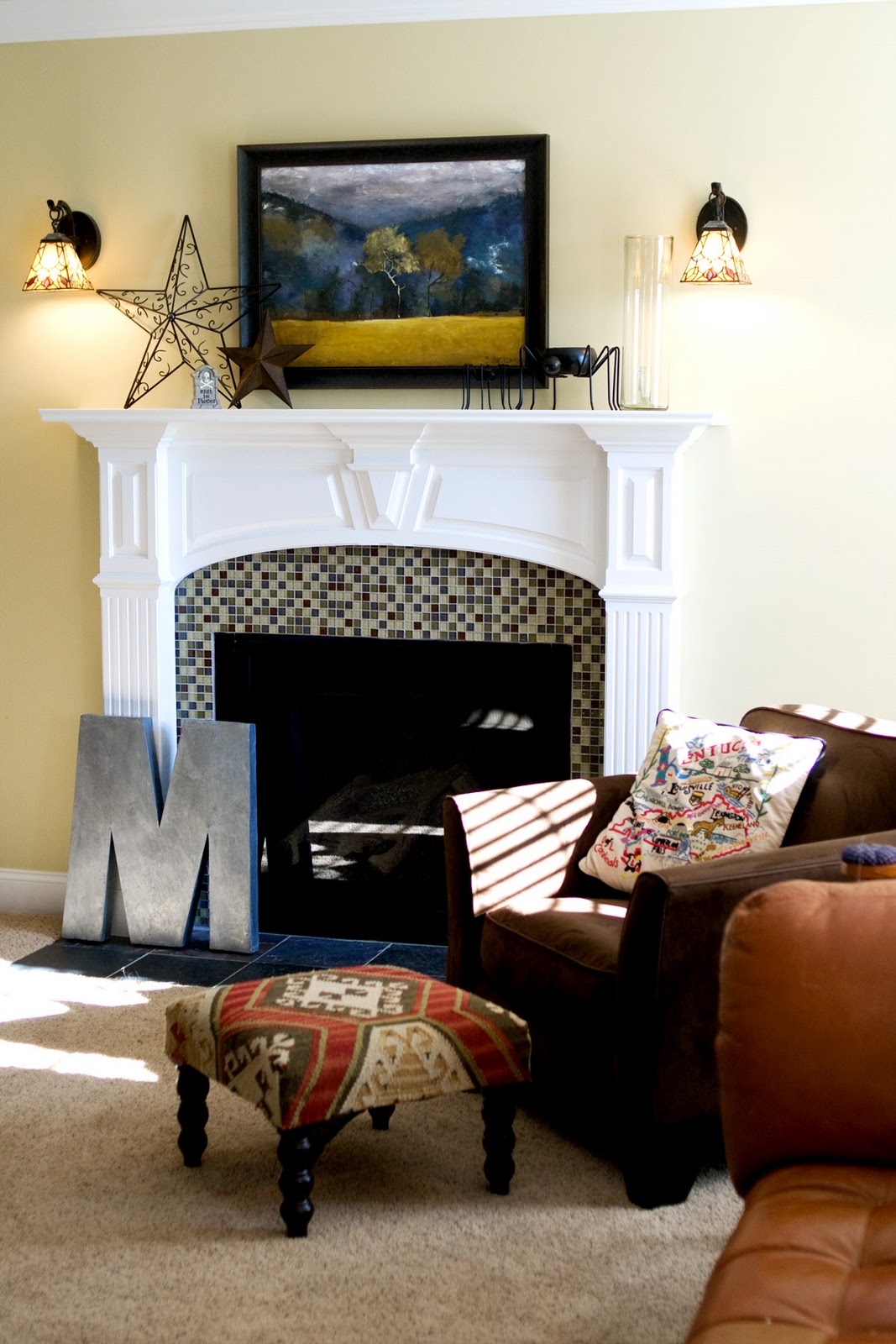 Slowly, very slowly I’ve been putting this room togther. A couple of weeks ago we finally did the tile around the fireplace!