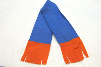 I decided to have the kids make their own scarves from polar fleece. Our school colors are orange and blue so I decided to go with school colors.