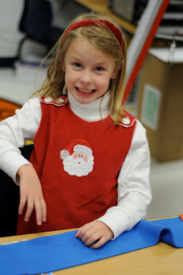 I pre-cut these pieces at home then when we got to school the kids assembled them.