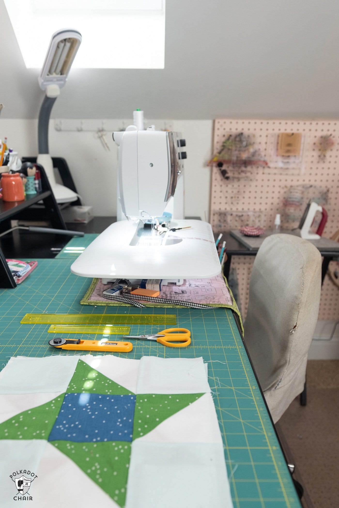 FPP involves a lot of pressing and trimming. If you constantly stand up to trim your fabric and then move to your ironing board to iron, you’ll get worn out very quickly.