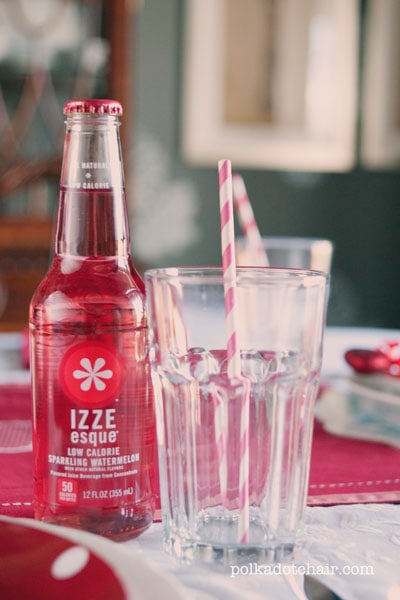 We always have Fettuccine Alfredo and Chicken Parmesan. The real stuff. With fresh pasta, and real cream and butter. And the chicken has to be pounded out thin. I had to buy the pink soda, it matched!