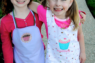 I ordered aprons in bulk online, then using inkjet transfer paper, printed a cupcake, and ironed it onto the aprons. I would have loved to applique cute cupcakes on all of them but didn’t think I could get them all done.