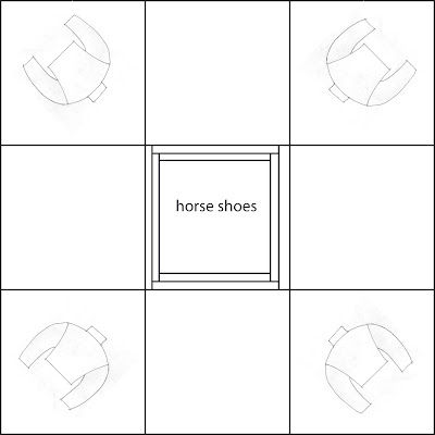 Stitch around each appliqued element (the jockey silks and horseshoes)